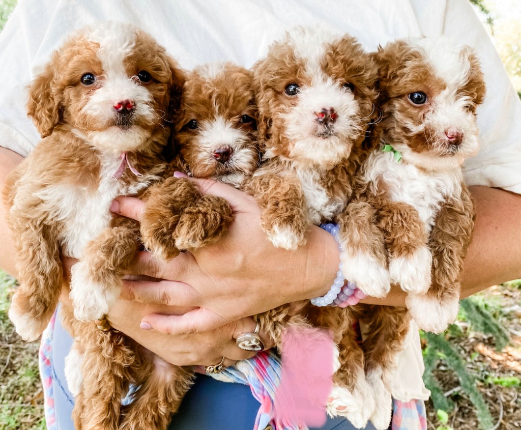 We are a small in home breeder (Not a Kennel) and pride ourselves on offering multi-generational Goldendoodles. We love us some doodles!! The poodle cross makes for a more intelligent dog, great low to no shedding coat quality, and allergy friendly companion. We always joke that they are Human Dogs! Their personality is just the greatest:)